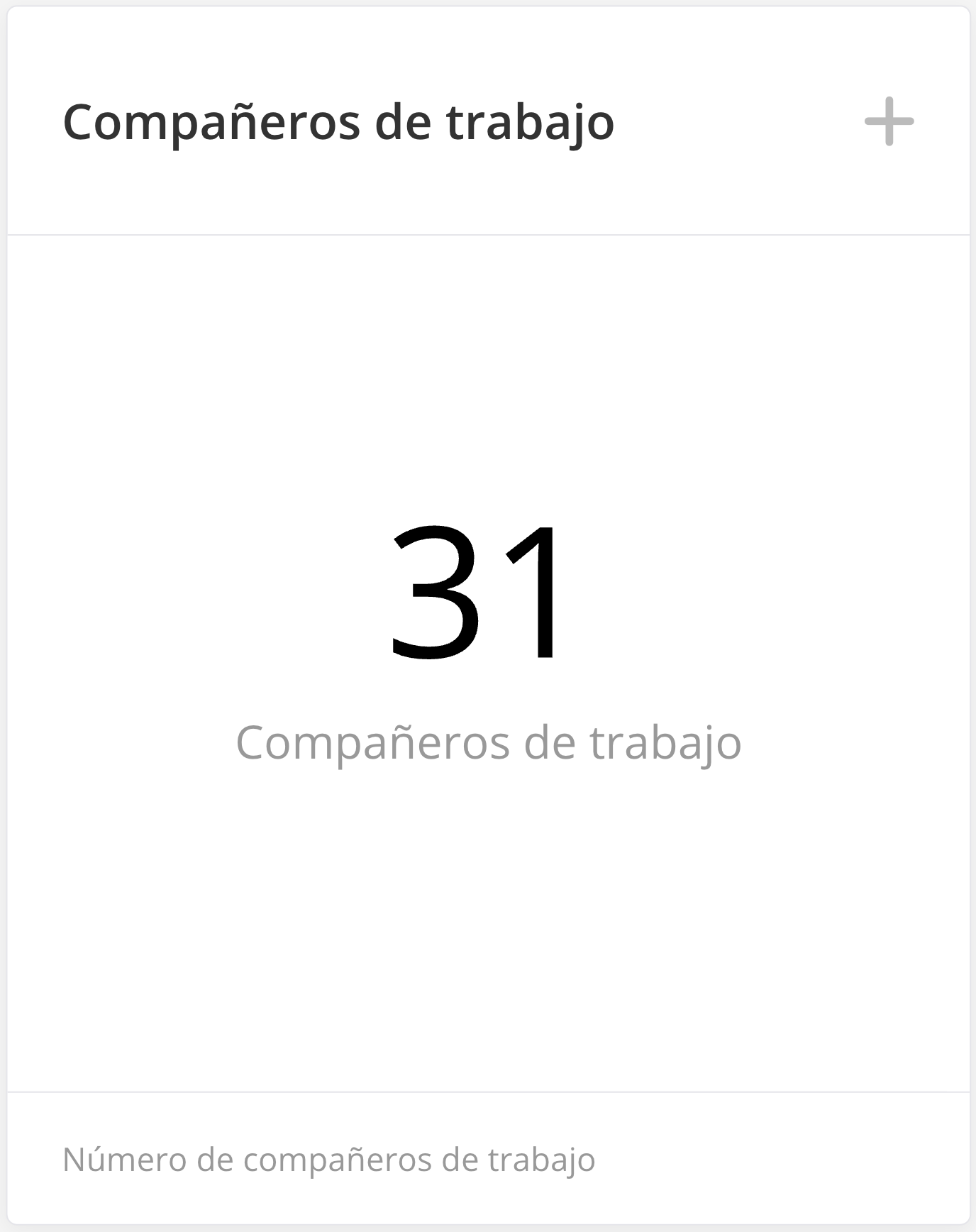 Este widget muestra la cantidad de compañeros de trabajo según la corporación, el departamento o el grupo de departamentos del usuario. Al crear un nuevo usuario en RecMan, el usuario puede elegir cualquier departamento que estará conectado a un nuevo usuario. Según este departamento, los usuarios se contarán en el widget.