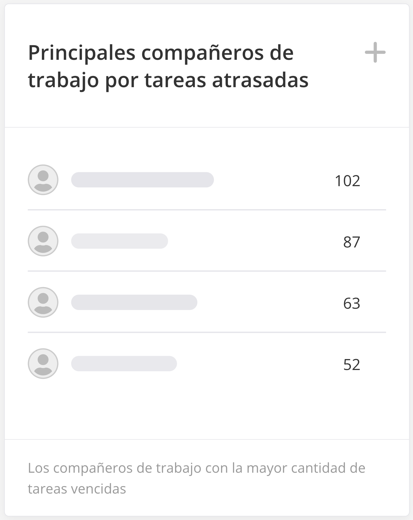 Este widget tiene un diseño similar a un marcador, mostrando a los compañeros de trabajo con el mayor número de tareas vencidas.