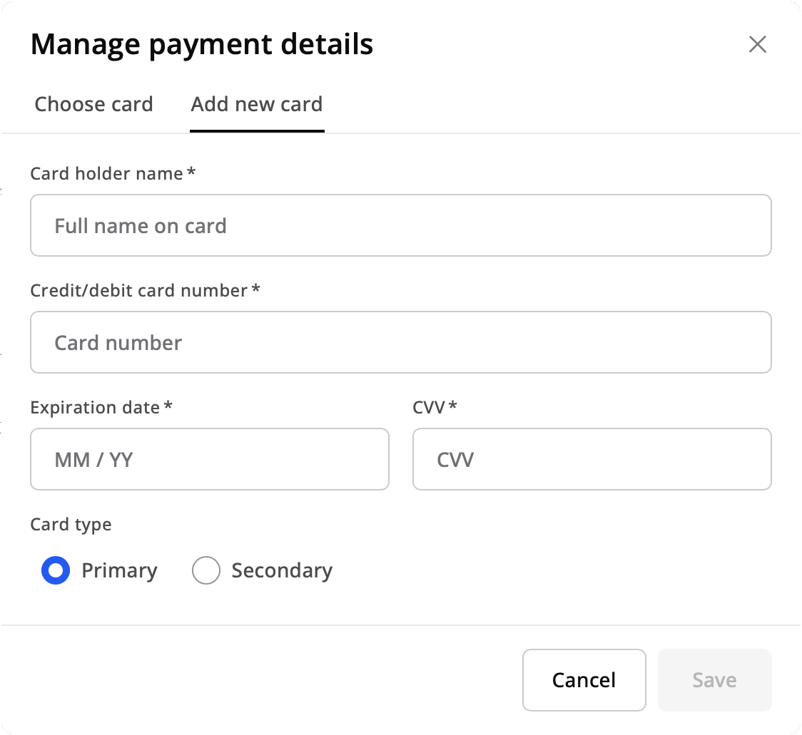 La primera tarjeta que agregue se establecerá como el método de pago principal (predeterminado). También puede agregar otras tarjetas y especificar cuál desea usar como principal.