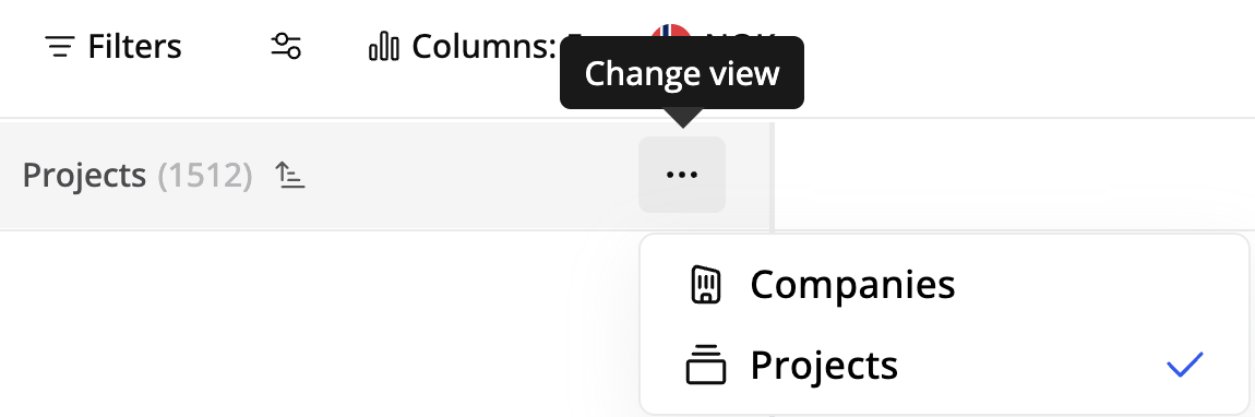 Elija qué entidades ver – empresas o proyectos.