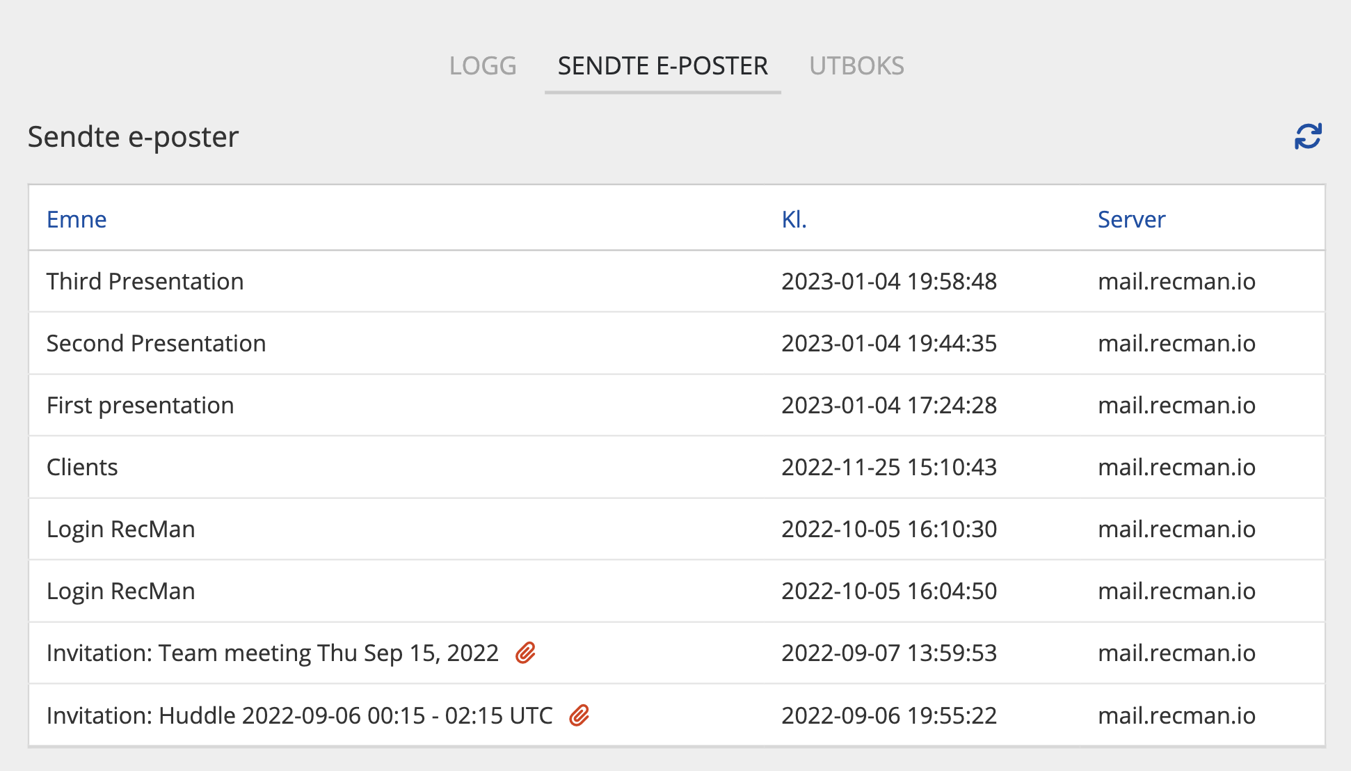 10. Logg/Sendte e-poster/Utboks