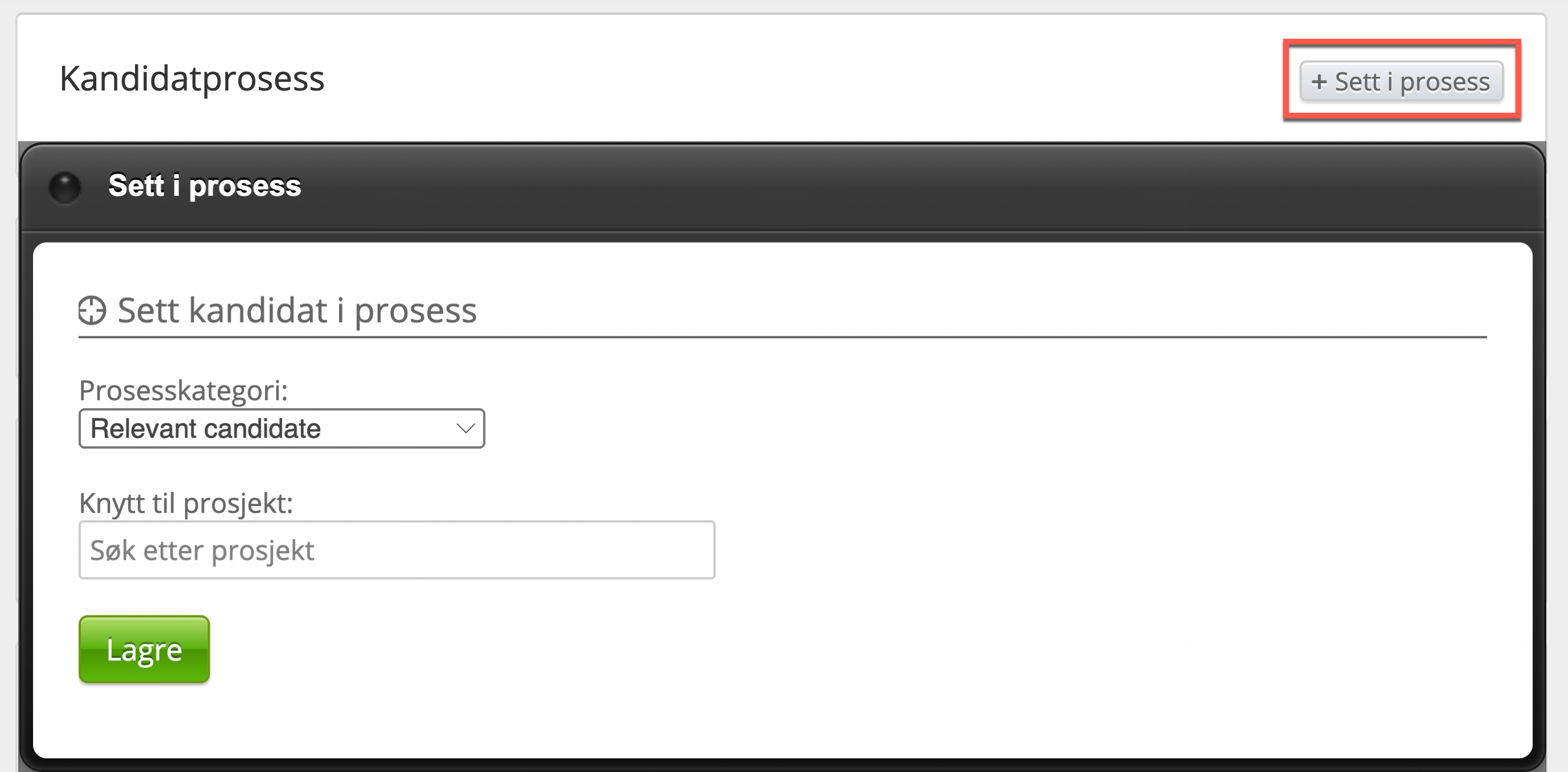 Her kan du lese om kandidatprosessen som er koblet til et prosjekt, både hvordan legge nye i prosess og hvordan det fungerer helt grunnleggende.