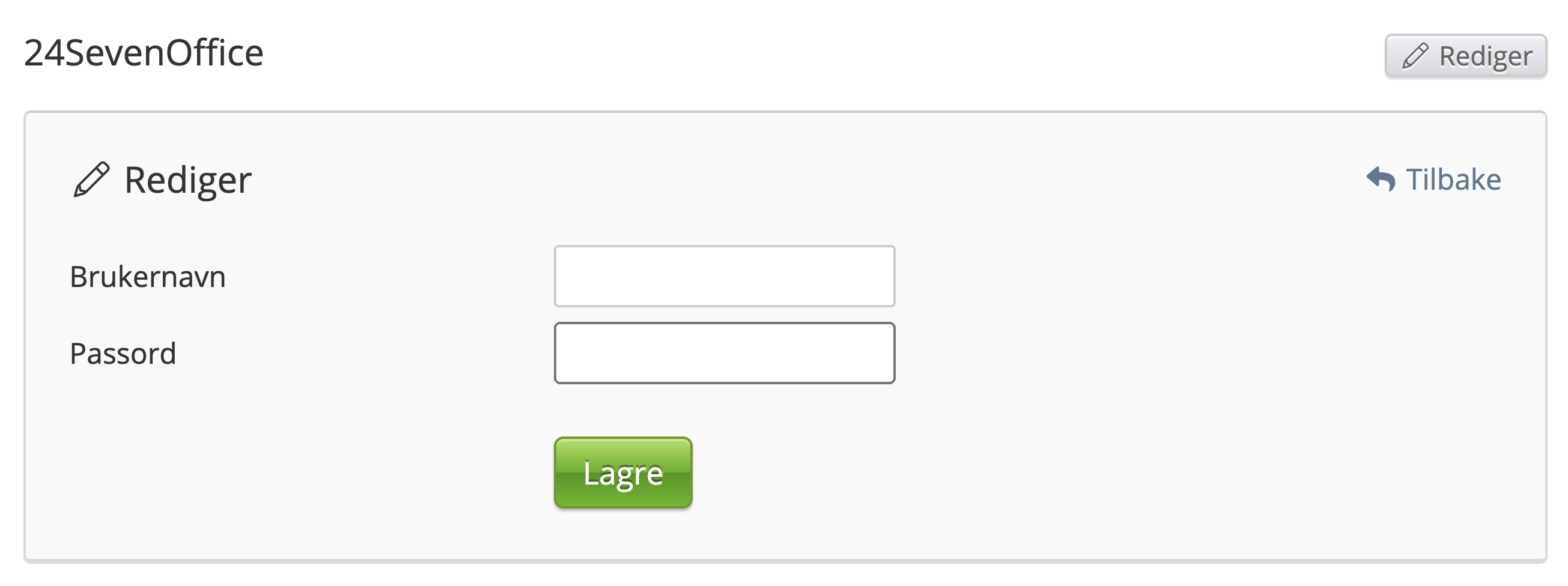 Fra Systeminnstillinger → Økonomi → Avdelinger → 24SevenOffice, kan man trykke på Rediger i boksen og legge inn brukernavn og passord fra deres 24SevenOffice bruker.
