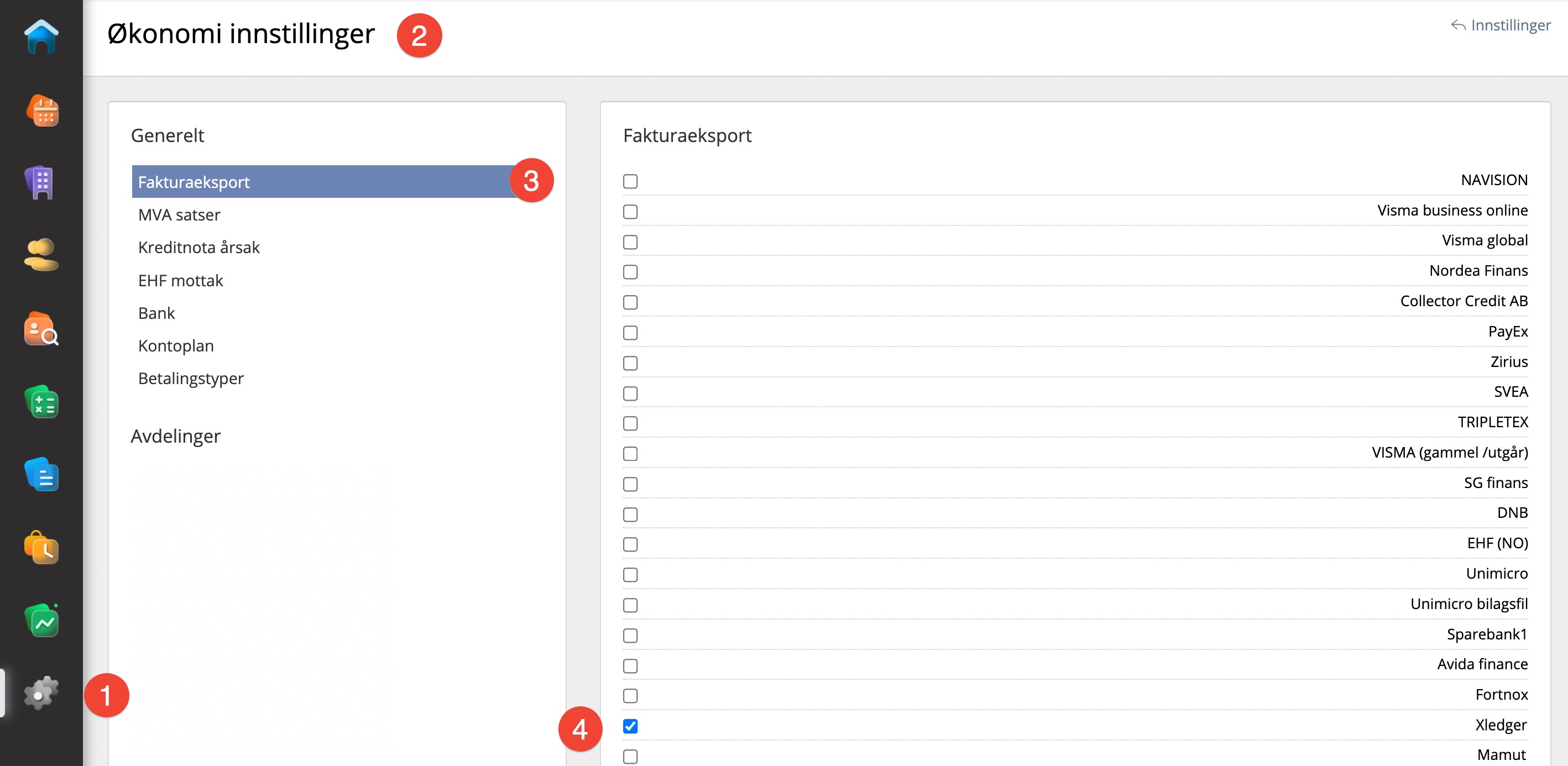 Skru på Xledger som mulighet for fakturaeksport