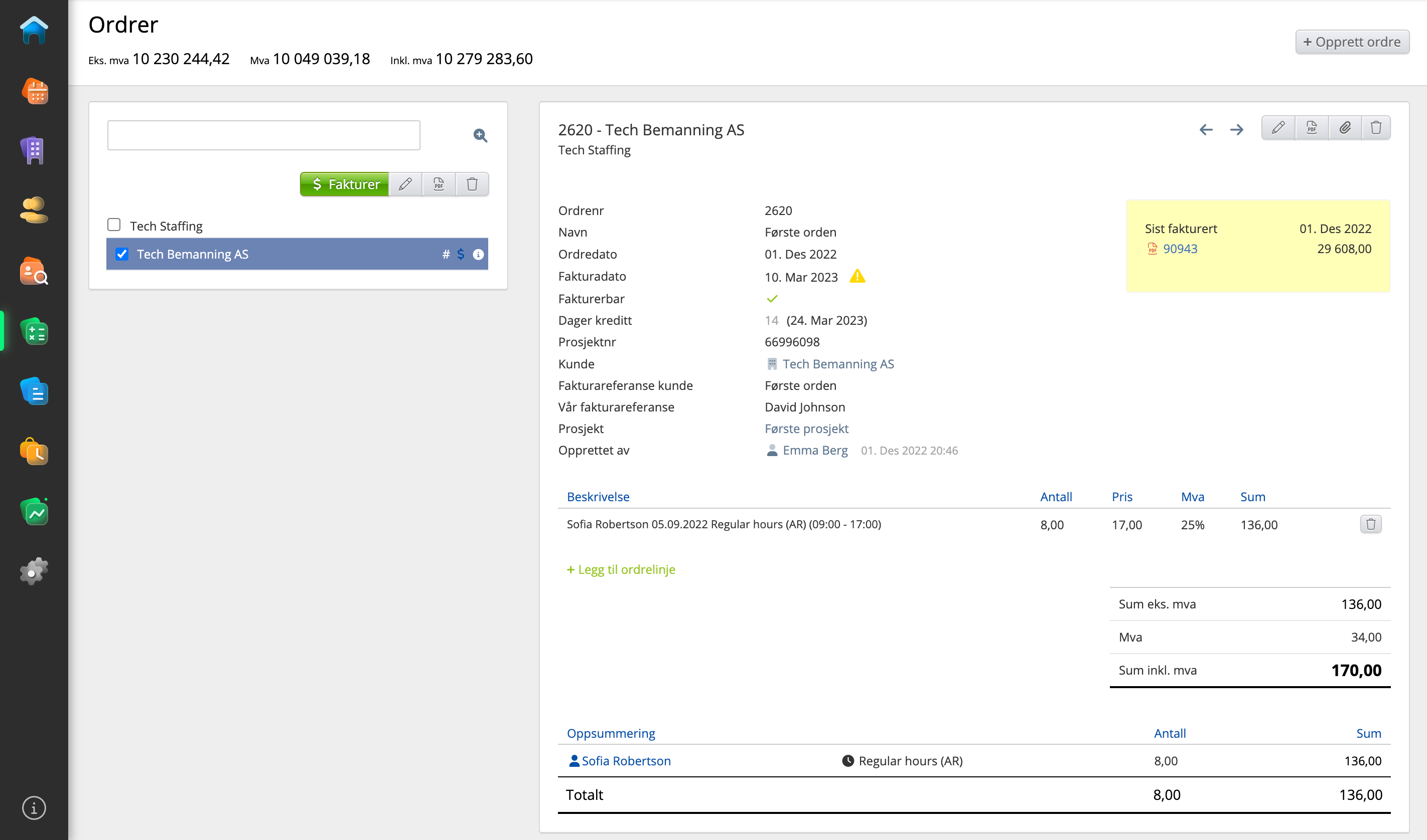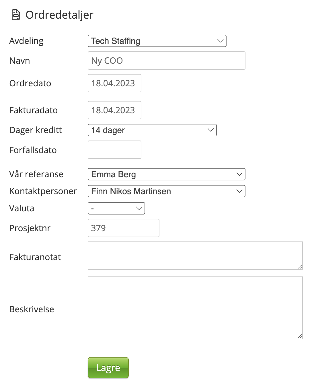 Det må foreligge en ordre før du kan opprette en faktura. For å opprette en faktura må du altså opprette ordren først, og deretter lage en faktura av denne.