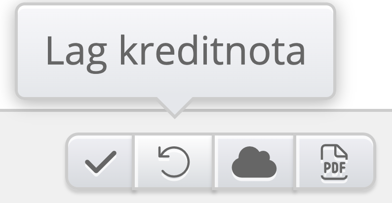 - Den neste knappen (to piler) er for å opprette kreditnota (se neste del for kreditering).