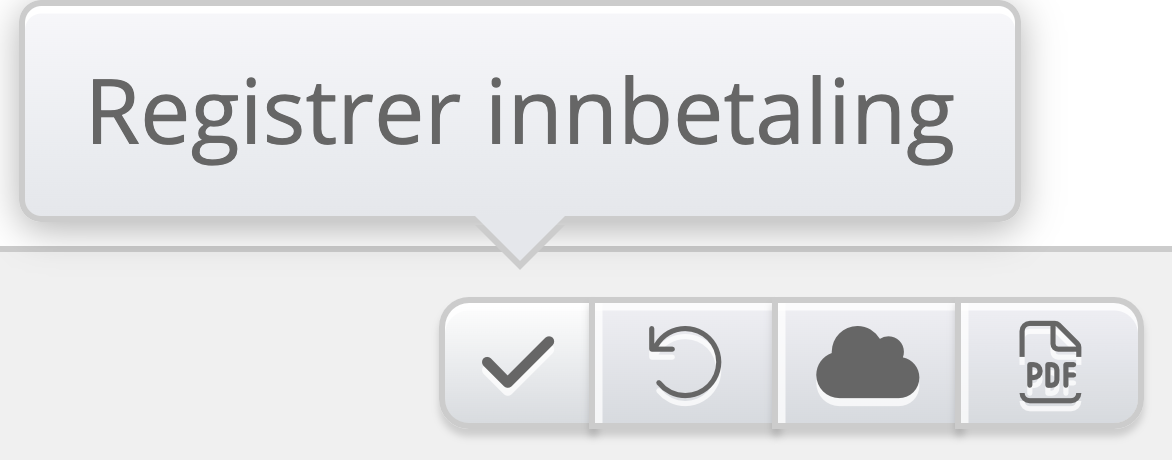 - Den første knappen (checkmark) trykker du på for å registrere innbetaling. Dette kan også skje automatisk dersom man importerer OCR-filer fra nets. Dette gjøres via importer knappen ifra menyen inne i fakturaoversikten. Denne endrer seg til et kryss (marker som ikke betalt), hvis det er registrert innbetaling på den.