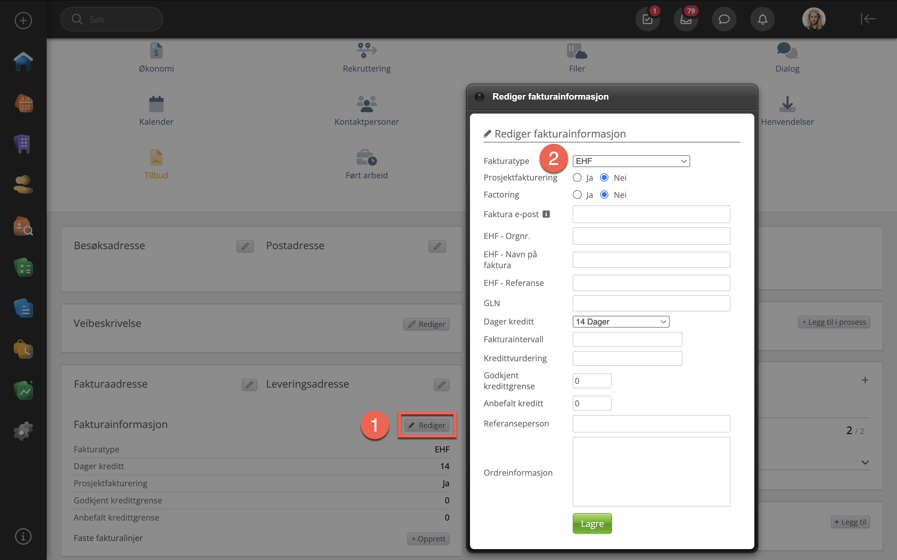 Når dette er gjort kan du velge EHF på alle selskapene i ditt CRM eller ved opprettelse av nytt selskap.