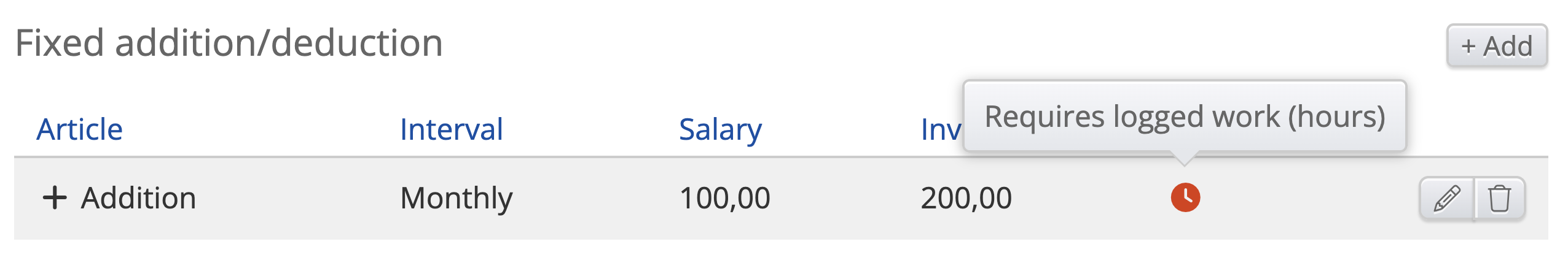 Å legge til en regel for tillegg vil være lik metoden for lønn nevnt ovenfor. Ved søknad vil den ansatte automatisk få tillegg per time som definert i oppsettet.