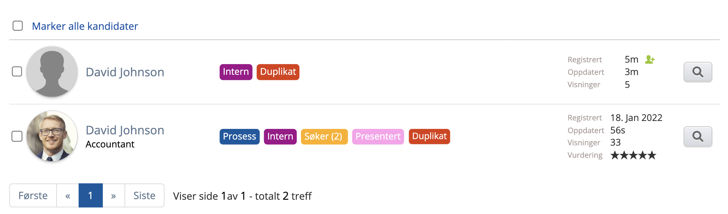Normalt sett skal det ikke oppstå duplikater i RecMan, da du ikke får lov å opprette flere kandidater med samme e-post. Skulle et duplikat allikevel oppstå, kan dette gjøres ved hjelp av noen enkle steg.