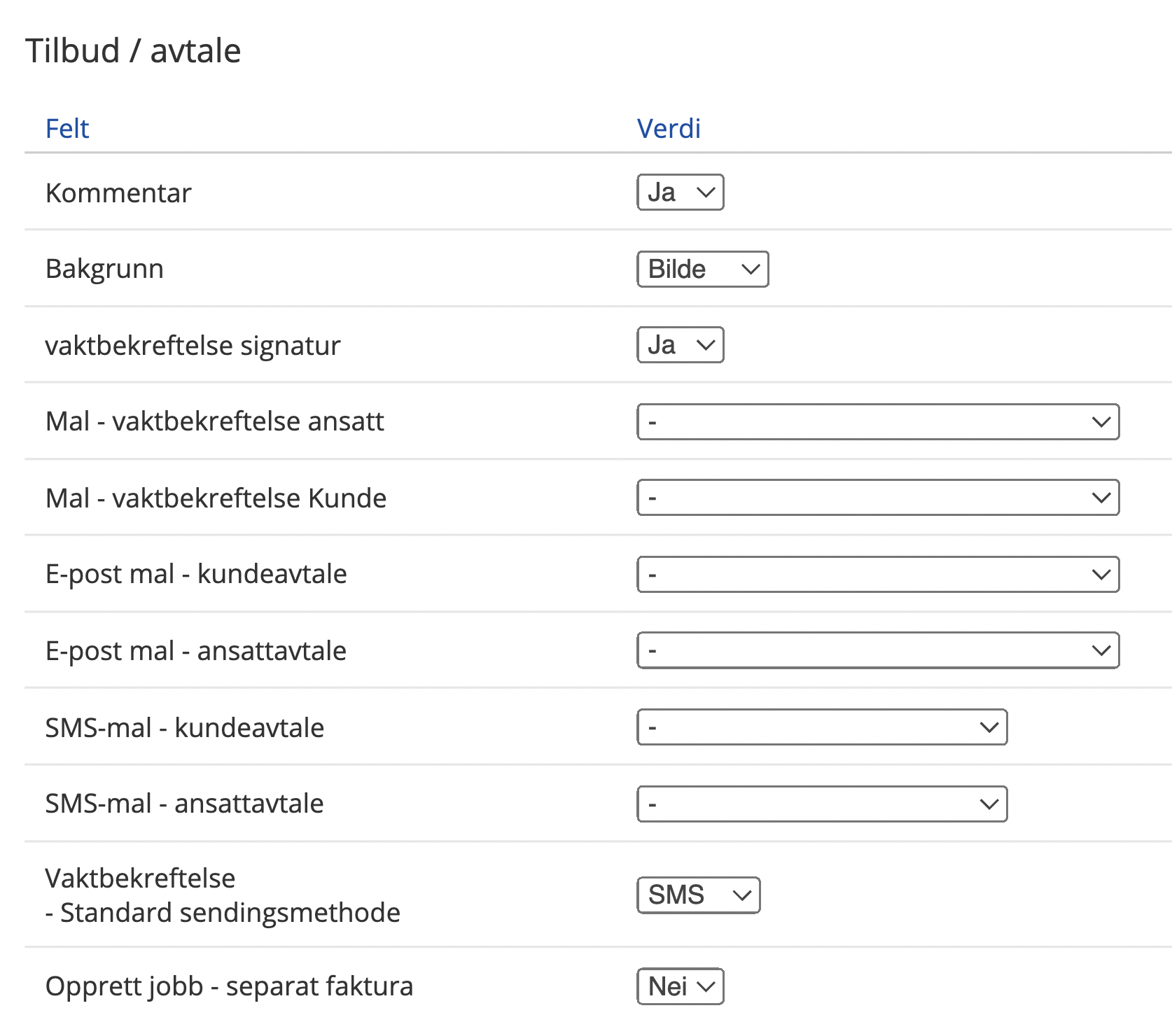Du velger ikke hvilken mal som skal brukes for vaktbekreftelsen her, hvordan du definerer dette kommer vi tilbake til lengre ned i artikkelen.