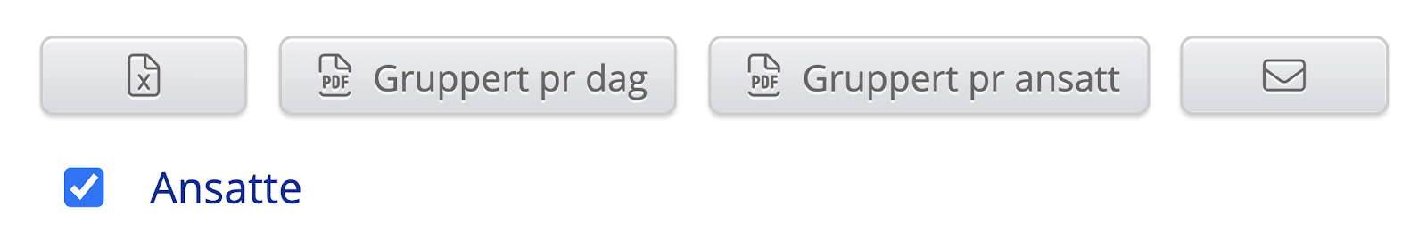 Hvis man markerer en eller flere ansatte så får man opp ekstra muligheter. Her får man muligheten til å laste ned vaktene i Excel eller PDF format med ulik oversikt og å sende e-post til de ansatte.