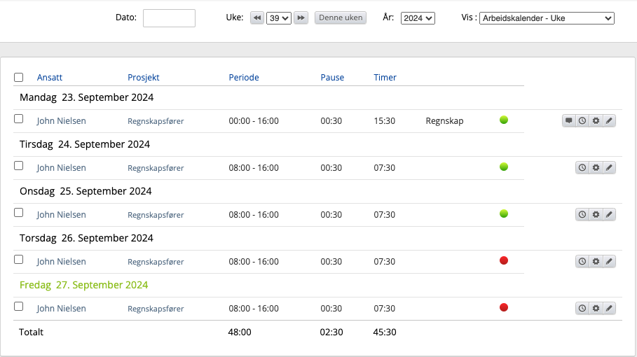 - Rød prikk – En vakt uten registrert arbeid.