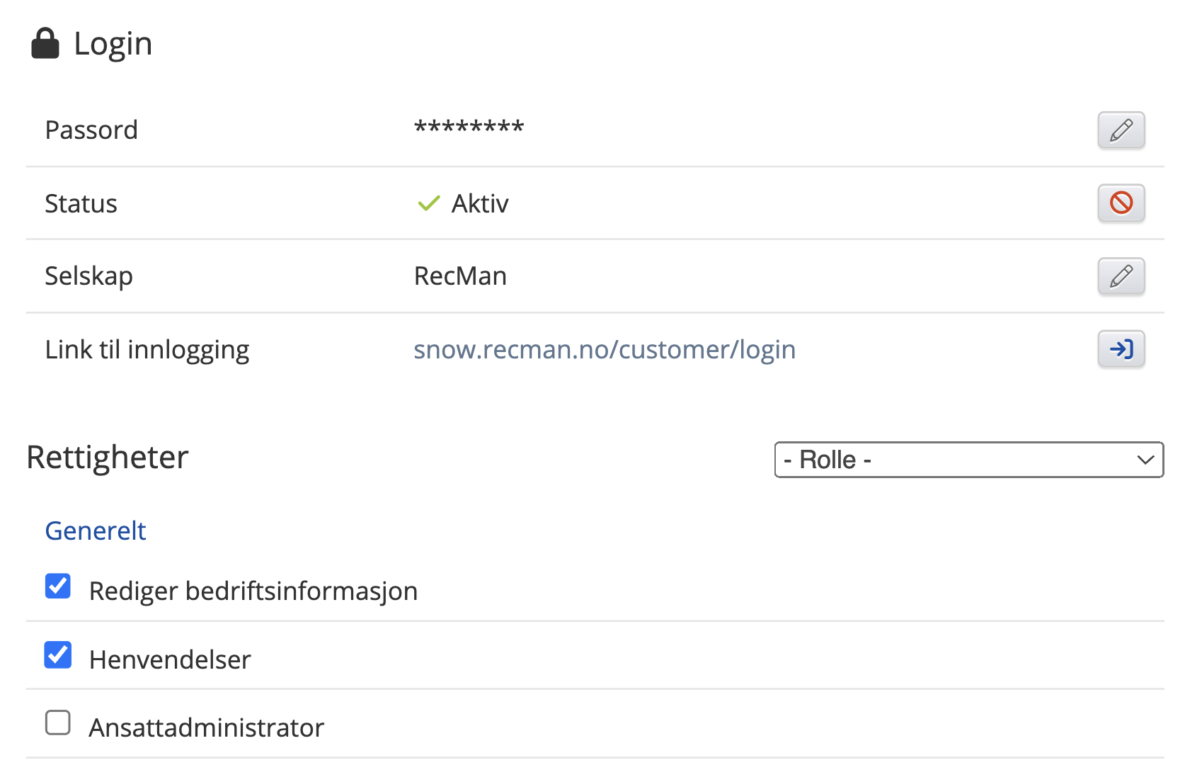 - Bedrift - Se faktura – Gir tilgang til fakturaer som sendes til kunden de er tilknyttet.