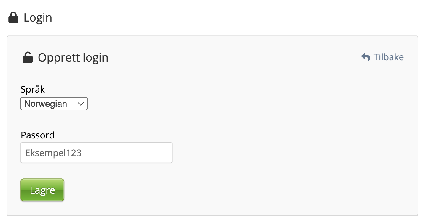 Når du trykker på Opprett Login vil du få opp følgende boks: