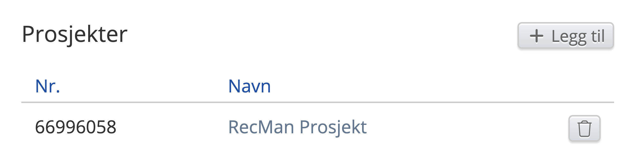 - Her kan du se prosjekter som er knyttet til timegodkjenneren, samt legge til og fjerne.