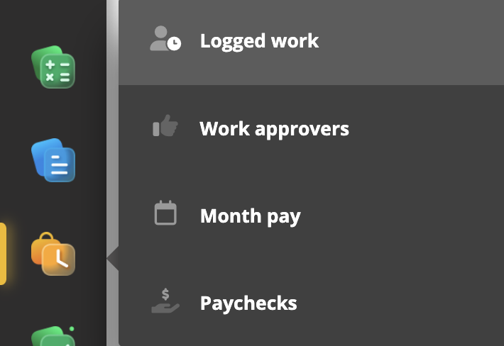- Du kan enkelt navigere deg frem til ansattavtale, registrer arbeid, prosjekt osv.