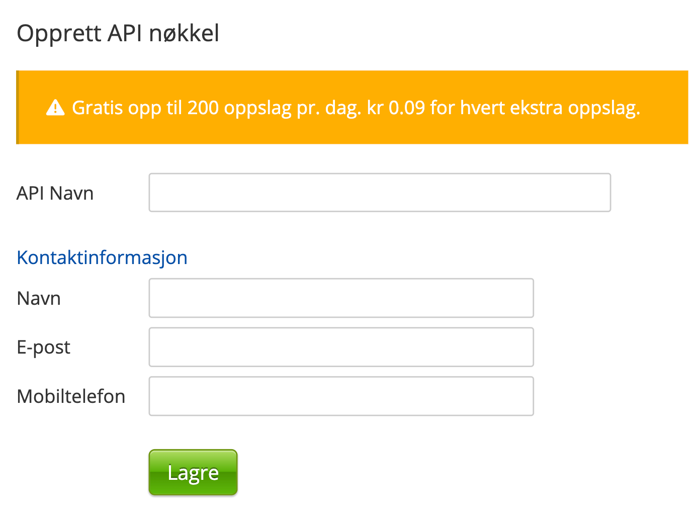 Generering av en API-nøkkel og API-URL