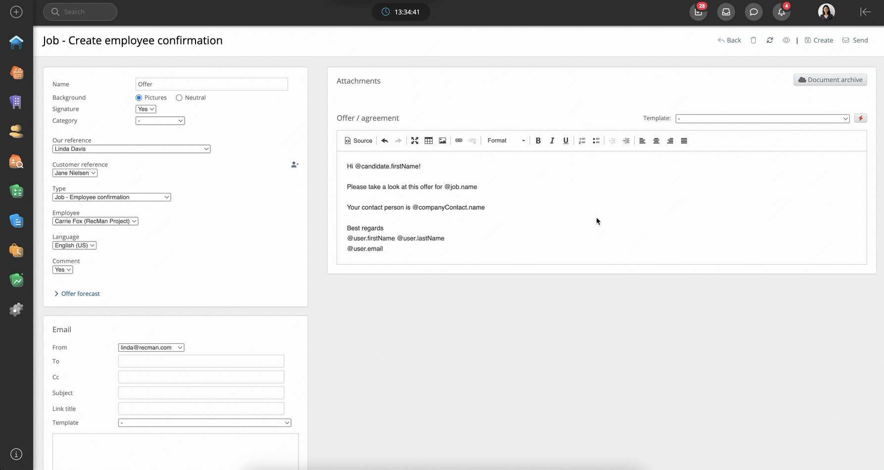 Mens @project trenger en tilkobling til prosjektet for å hente informasjonen fra det. Så hvis du sender en avtale til kandidaten fra kandidatkortet, vet den ikke hvilket prosjekt den skal velge og gjør derfor ingenting.