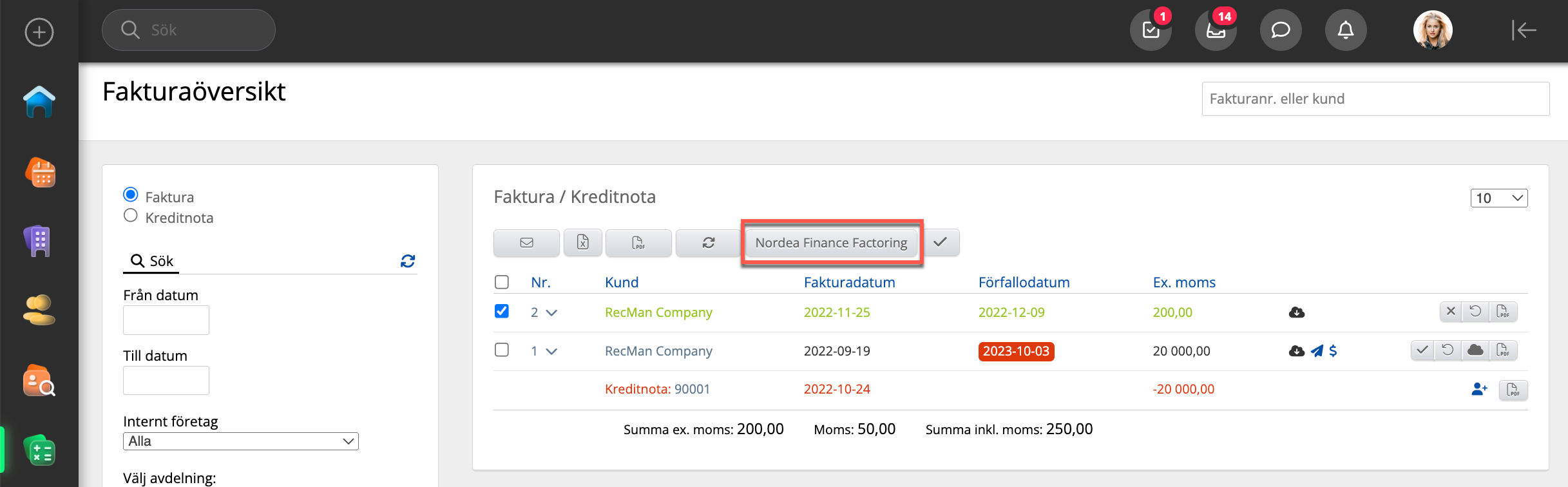 - Aktiver Nordea Finance factoring.