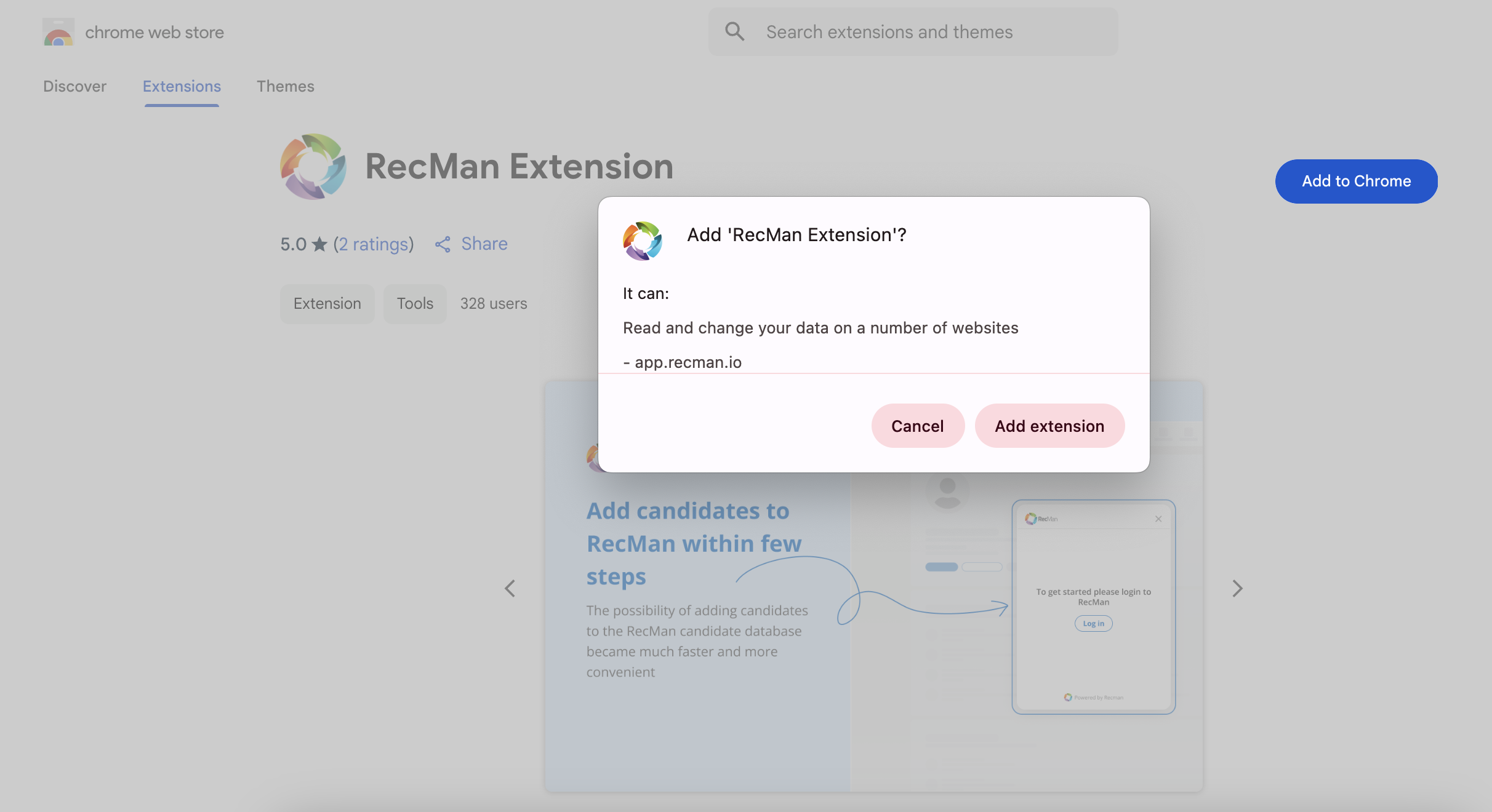 RecMan utvidelsen er tilgjengelig i Chrome nettbutikken her.