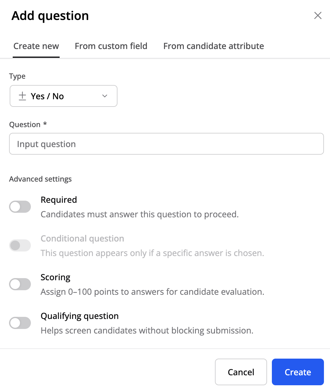 - Kvalifiserende — hjelper til med å screene kandidater basert på dine kriterier uten å blokkere innsending.