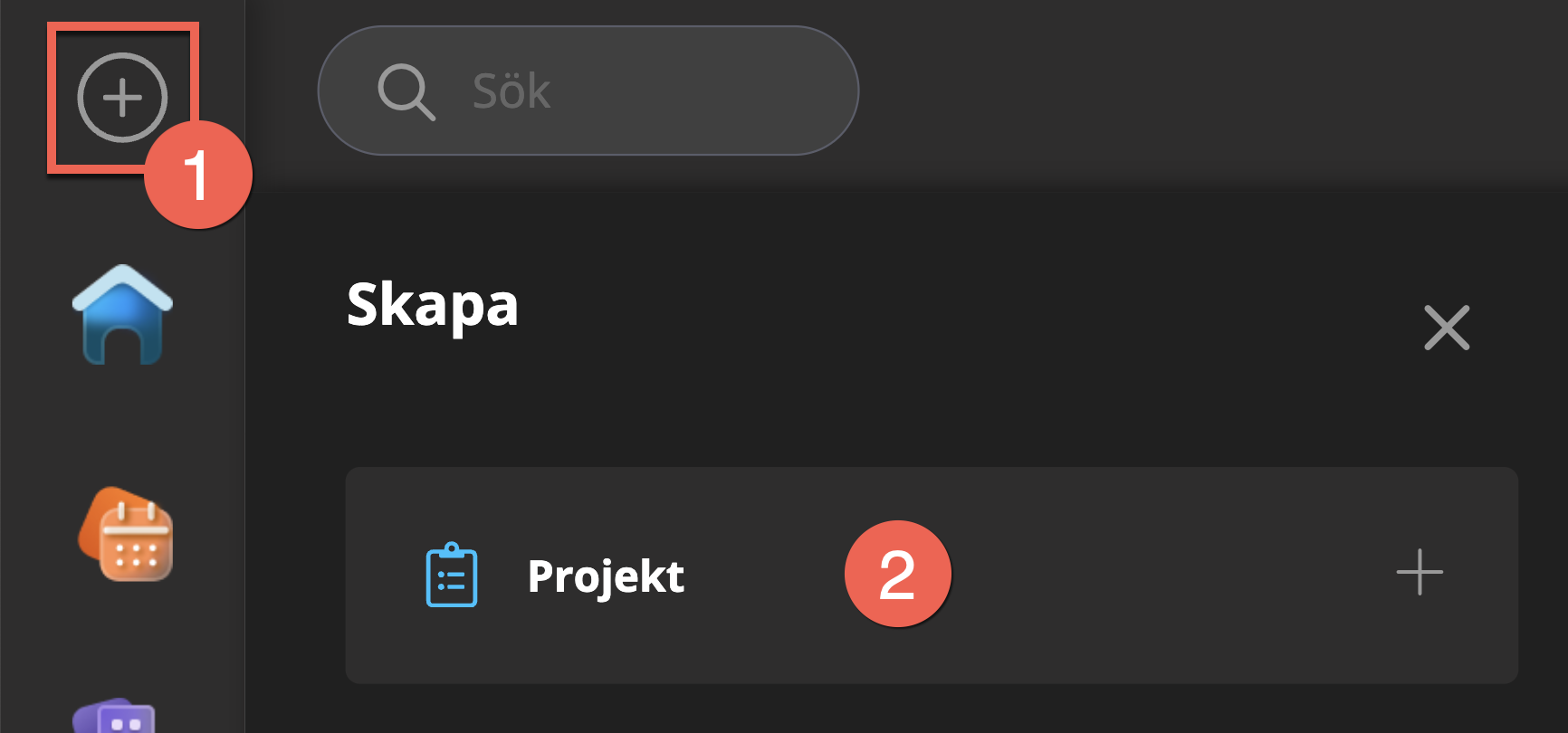 Tryck Skapa projekt. Du kan hitta knappen för att skapa ett nytt projekt på flertalet ställen i systemet, inklusive på kundkortet.