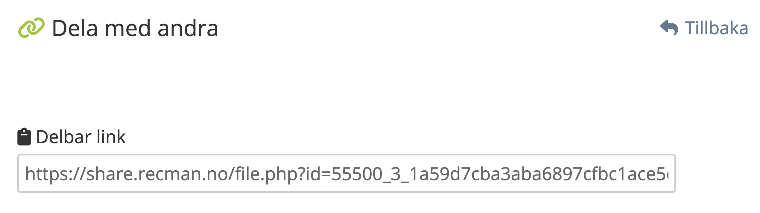 Linken som genereres her er den delbare linken man skal kopiere inn i RecMan.