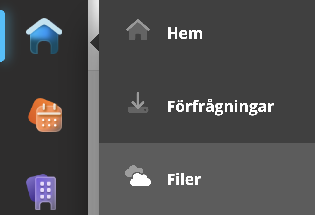 - Företagsfiler – Låter dig se filer som sparats till ett kund- eller projektkort. Du behöver söka på kunden eller projektet.