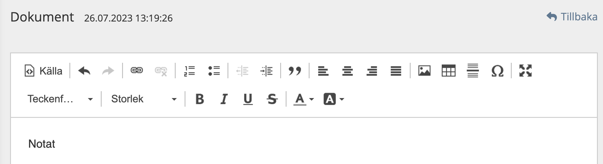Som du kan se så använder du samma texteditor som du är van vid från andra delar av systemet, utökad med några ytterligare funktioner.