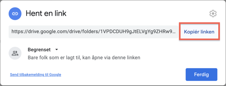 Det første man gjør er å generere en delbar link inne i Google Drive. Dette gjør du på følgende måte: