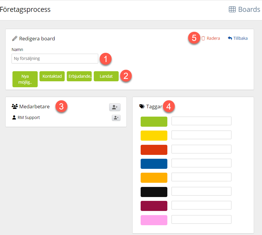 - Här kan du radera din board eller gå tillbaka till företagets processfönster.