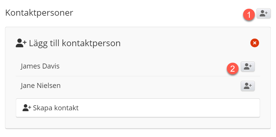 - Här kan du lägga till kontaktpersoner till företaget. Du kan välja både från en lista med redan befintliga kontaktpersoner eller du kan skapa nya.