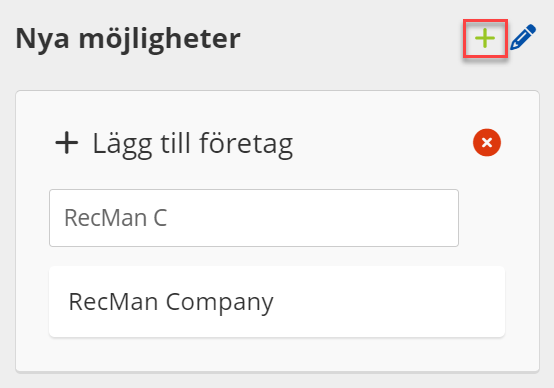- Här kan du lägga till kandidater som kommer att vara kopplade till företaget. Tanken här är att till exempel i en rekryteringsprocess kan du länka en eller flera kandidater som sedan kommer att placeras på kortet.
