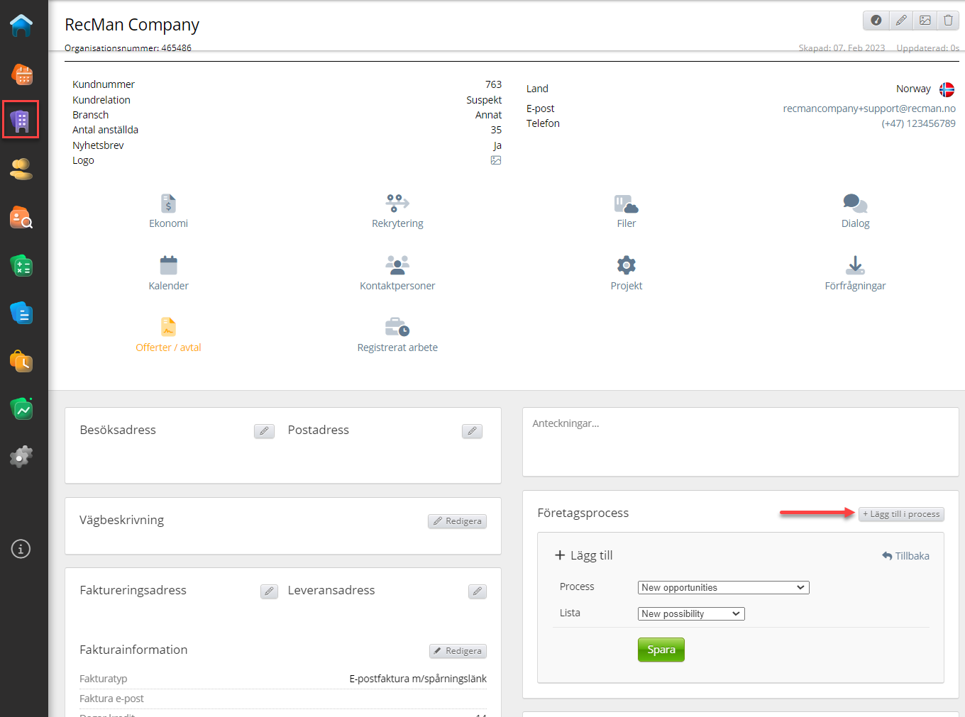 Företagsprocess finns i din CRM.