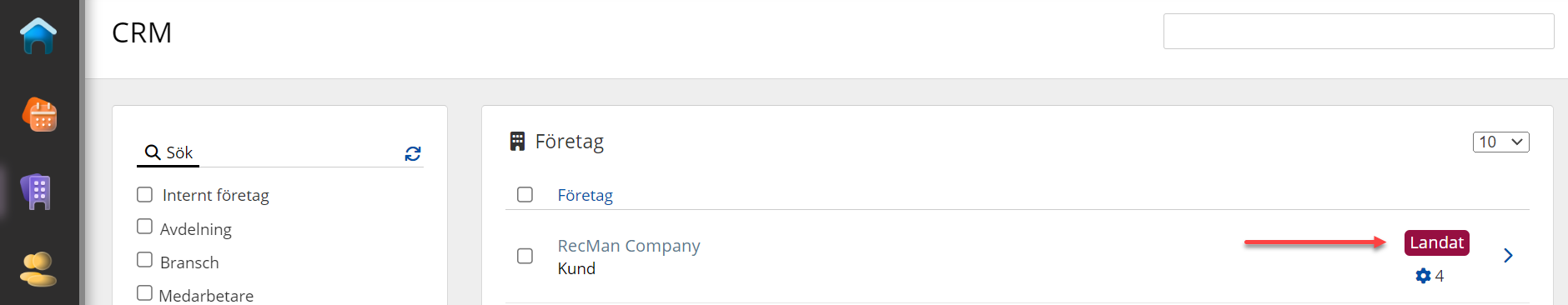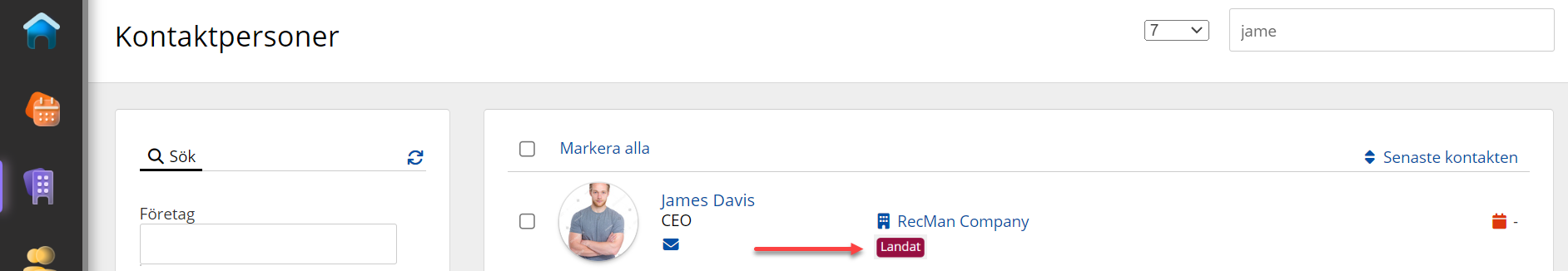 Genom att göra det kommer du också att se en tagg i kontaktpersonvyn. Detta gör det enkelt att se om en kontaktperson är kopplad till en viss Företagsledning.