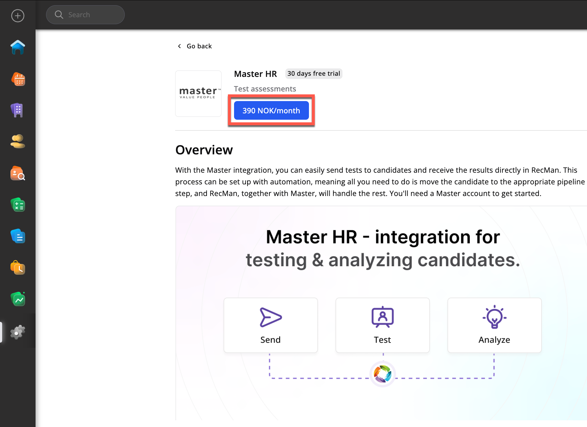 Klicka på aktiveringsknappen för att börja använda Master HR-integrationen.