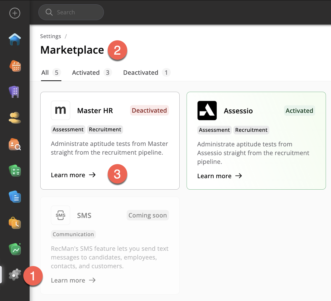 För att aktivera Master HR-integrationen, gå till Systeminställningar och välj Marketplace.