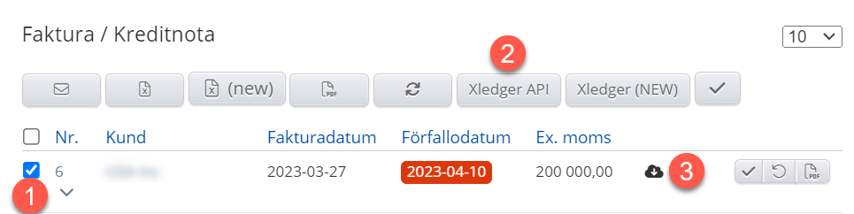 - Efter överföringen kan du se molnet bredvid fakturaraden som indikerar om fakturan har överförts.