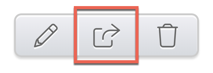 Som vi nämnt tidigare så har du möjlighet att välja vilka användare som ska ha tillgång till varje meddelandemall. När du markerat en mall så ser du tre knappar längst upp till höger. Mittknappen låter dig dela mallen med dina medarbetare, som du kan se nedan.