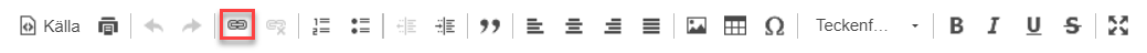 Om du vill länka direkt till en online-källa, som en websida eller fil, så är det möjligt. Du kan göra det på två sätt. Antingen kan du trycka på länksymbolen i texteditorn och klistra in din länk direkt, eller så kan du markera några relevanta ord i texten innan du klickar länksymbolen och klistrar in länken. Orden blir då en klickbar länk till online-källan.