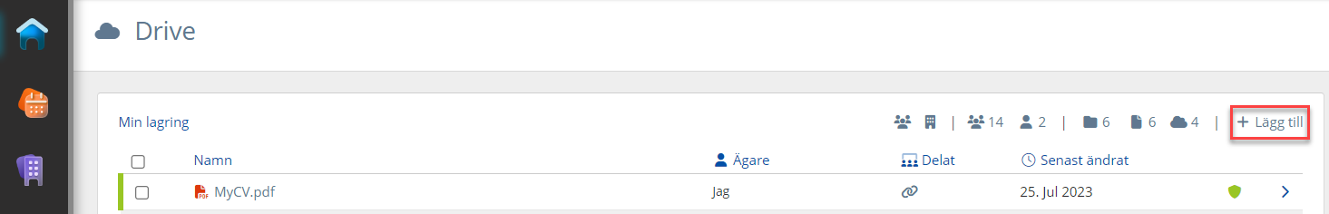När filen laddats upp så tryck på bakåt-pilen för att gå tillbaks till Filarkivet. Lokalisera filen och följ linjen till det Dela-området. Här hittar du en liten kedjesymbol, klicka på den. Du får nu upp en URL som länkar direkt till själva bilden. Kopiera den här URL:en, eftersom den behövs i Steg 2.