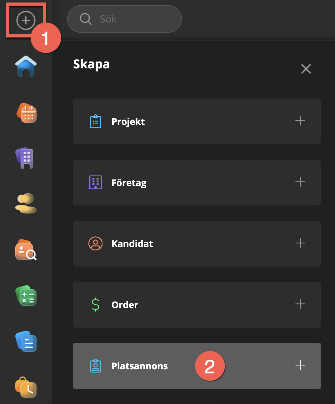1. Gå till plustecknet uppe till vänster och klicka på Platsannons.