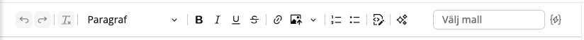 Detta är en så kallad "rich text editor" som låter dig skapa och formatera innehåll med funktioner som fetstil, kursiv, infoga bilder, listor, länkar, annonstextmallar och mscripts, redigering av HTML-kod samt användning av RecMan AI.