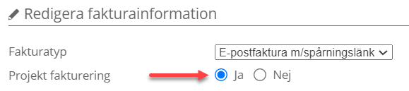 Tryck på Redigera och sätt projektfakturering till Ja.