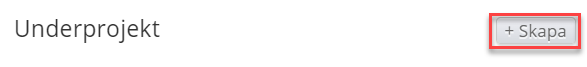 Du kan nu se en sektion på kundkortet som heter Underprojekt, där du kan skapa olika underprojekt för kunden genom att trycka på Skapa. Här kan du även redigera eller radera underprojekt som tillhör kunden.