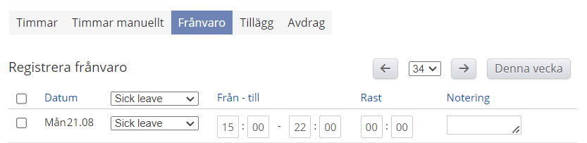Allt som registreras här baseras på jobbets kollektivavtal. Om du vill ändra utfallet av registrerade timmar måste du ändra i jobbet och sedan registrera dem igen.