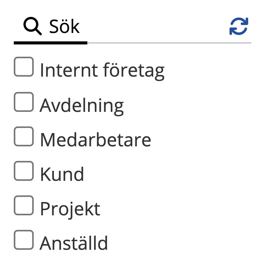| Projekt | Visar aktiva anställda som är knutna till det valda projektet. |