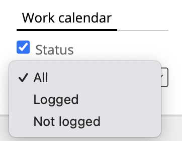 Med filtret Status kan du filtrera på de anställda som har inrapporterat arbete på pass (Registrerade) under perioden eller eventuellt de som inte har inrapporterat arbete på pass (Ej registrerade). Det innebär att du enkelt kan skicka t.ex. ett e-postmeddelande till de anställda för påminnelse att rapportera sina timmar.