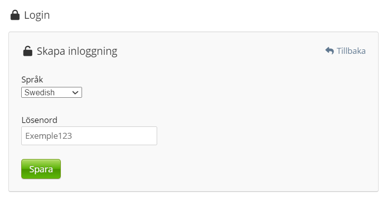 - Genom att trycka på Skapa inloggning kan du skicka användarnamn och lösenord till attestanten så att de kan logga in. Se mer nedan.